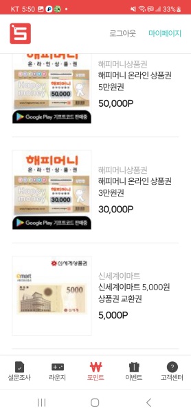 설문조사와 기타 여러 가지 방법으로 획득한 포인트는