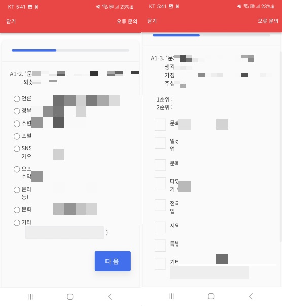 그러면 설문에 참여하실 준비가 다 되셨습니다.