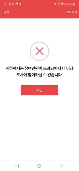 설문조사 진행 도중 조사 대상이 아니게 되면 입구컷(?)을 당하는 경우도 있습니다.