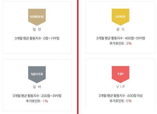 현 등급표는 위와 같이 일반/실버/골드/VIP로 구성되어 있습니다.