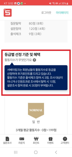☆ 활동지수 올리고 설문조사로 더 많은 포인트 받기