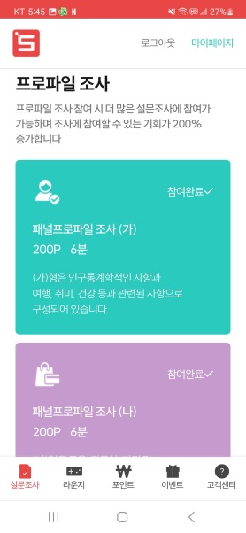 그러니까 서베이링크에 이제 막 가입하셨다면 프로파일 조사는 꼭 완료하시길 바랍니다! 제발!