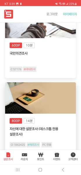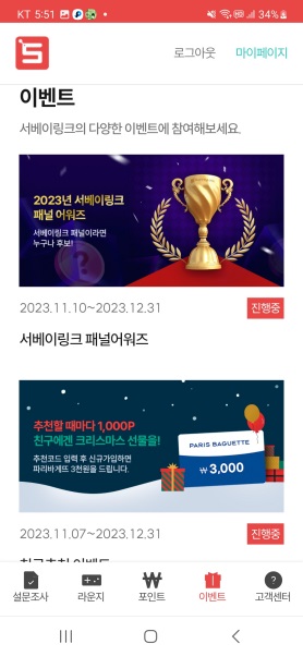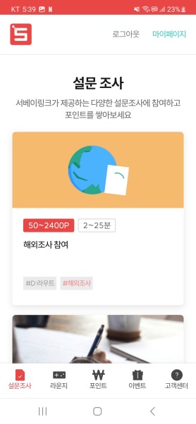 설문조사로 돈버는 것이 메인(main)인 서베이링크인데,