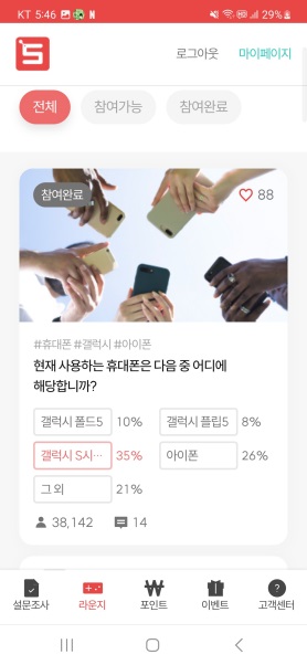 일부 설문조사는 해당 조건에 맞는 기기를 사용해야만 참여가 가능한 경우가 있습니다.