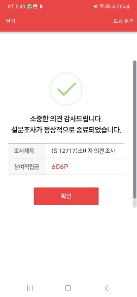 만약 설문조사를 끝까지 마쳤는데, 포인트가 적립되지 않은 경우 고객센터에 문의하면 처리해줍니다.