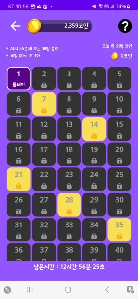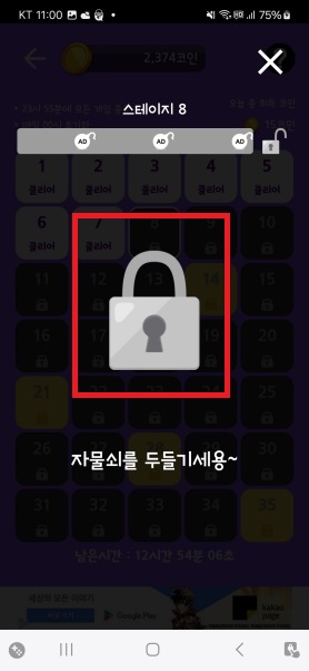 5스테이지 단위로는 자물쇠 열기 대신 짧은 동영상 광고를 봐야 합니다. (예. 스테이지5, 스테이지20...)
