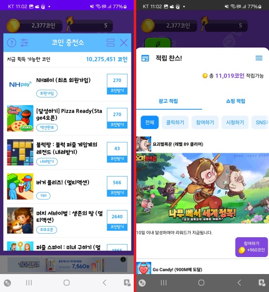 충전소는 광고에 참여하고, 보상으로 코인을 획득할 수 있는 서비스입니다.