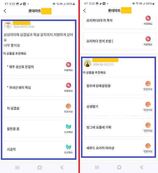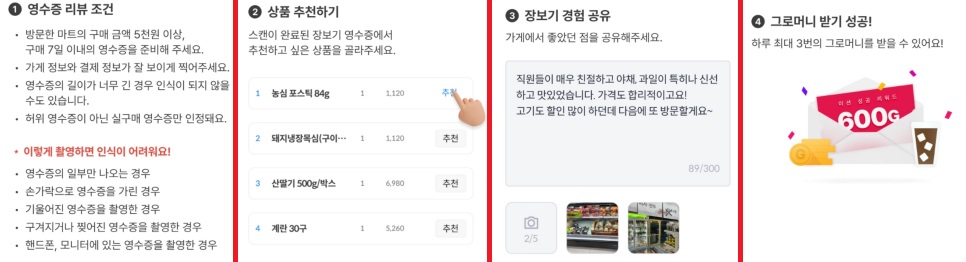 그리고 매장에서의 장보기 경험을 짧게 작성하면 완료!