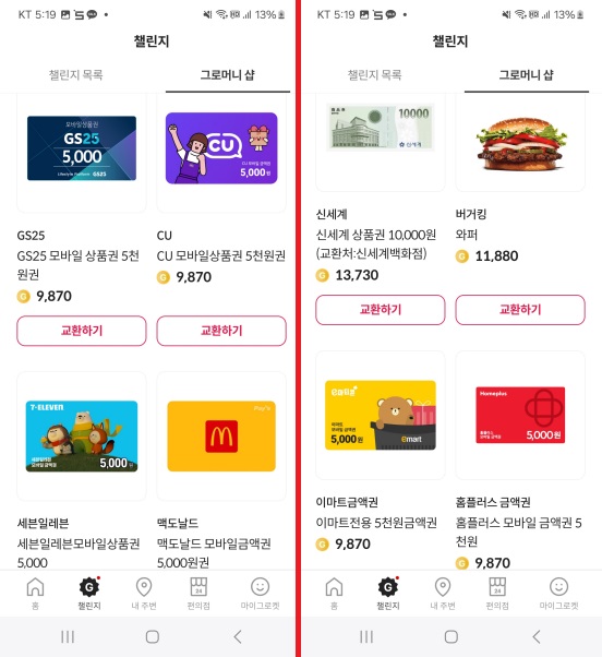 그로머니 샵은 [챌린지] → [그로머니 샵]을 통해서 들어갈 수 있습니다.