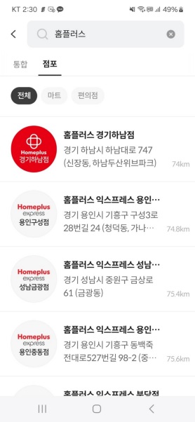 저는 '홈플러스'라고 검색하고 아무 매장이나 눌러봤습니다.