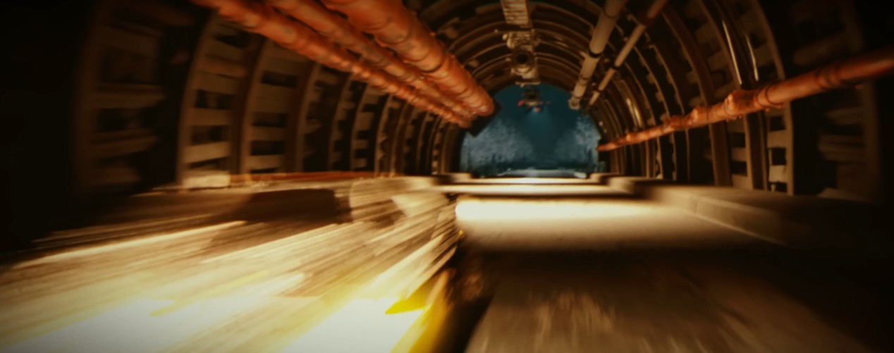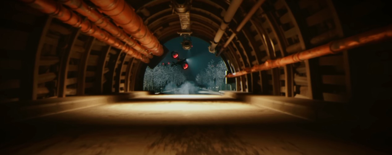 드론들은 터널 안에 들어간 자동차 추격을 포기합니다.