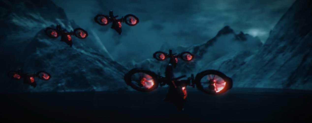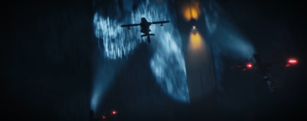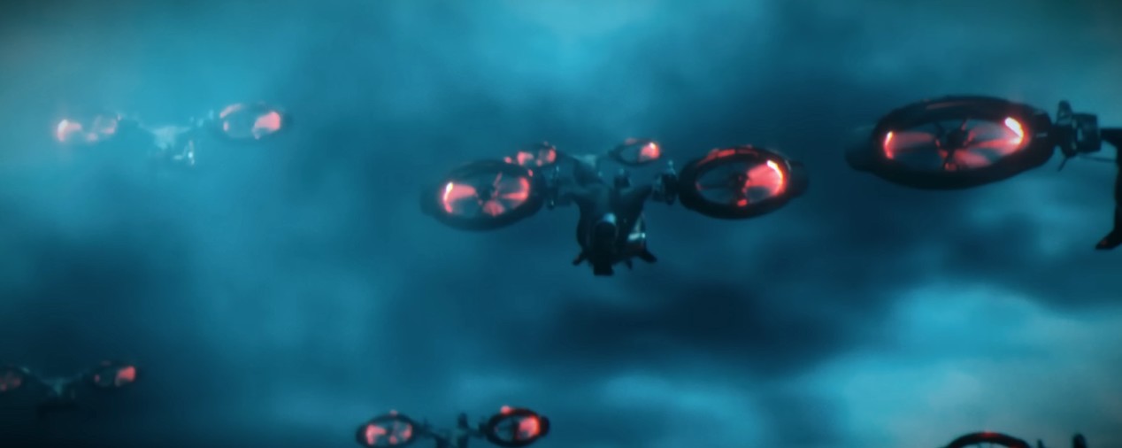시작에는 빨간 빛의 드론들이 등장합니다.