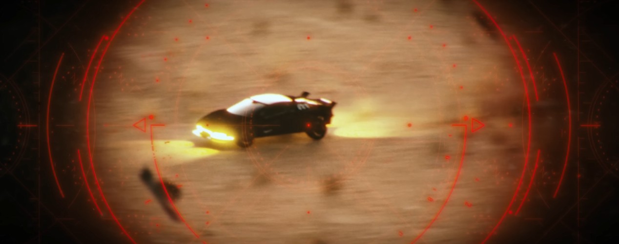 자동차는 엄청난 속도로 도로를 질주하고, 드론들은 이에 질세랴 자동차를 빠르게 추격합니다.