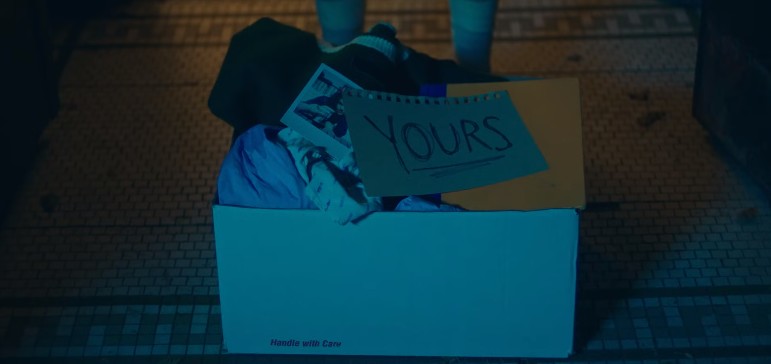 마지막 장면에는 집 문 앞에, 여러 물건들과 함께 'Yours(네 것들)'이라는 메모지가 있는 상자가 놓여있습니다.