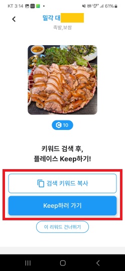 2) [Keep하러 가기] 버튼을 누릅니다.