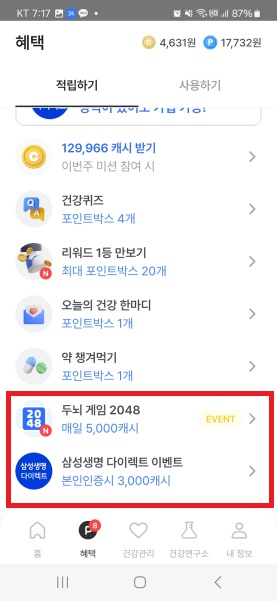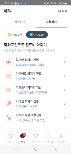 그럼 이 아래에서부터는 나만의닥터와 앱테크와 관련없는 기능 몇 가지만 수박 겉핥기식으로 살펴보려고 합니다. 나만의닥터 앱테크에만 관심있는 분들이라면 여기까지만 봐주셔도 되겠습니다.