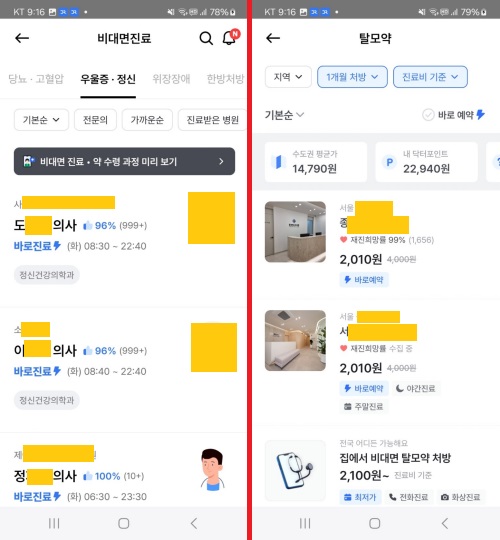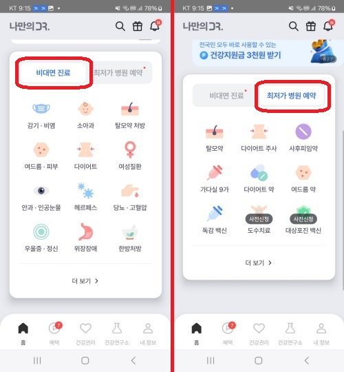 2) 비대면 진료/최저가 병원 예약: 나만의닥터의 핵심 기능