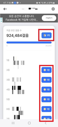 1) 만보기: 매일 만보 걷고 포인트박스 받기
