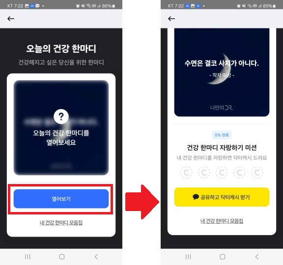 지금부터는 나만의닥터의 앱에서 앱테크 외 유용한 기능 몇 가지들을 살펴보려고 합니다.