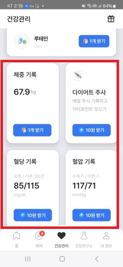 6) 내 건강 기록: 내 몸 건강 기록하고 포인트박스/닥터포인트 받기