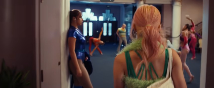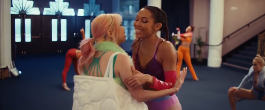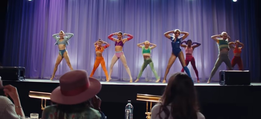 뮤비 장면 중 이 퍼포먼스는 동양인풍 여자가 다른 여자들의 동경 대상이 된 것처럼 보이는듯 합니다.
