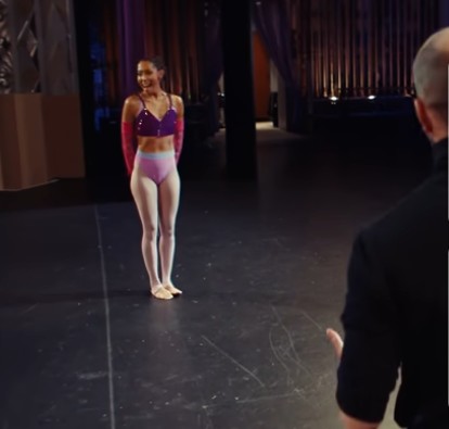 심사위원들이 서로 얘기를 나누는 사이 테이트는 못참겠다는듯이 머리끈을 풀고 무대로 나가는데, 동양인풍 여성도 뭔가에 응하듯이 머리끈을 풀고 테이트를 뒤따라 무대에 섭니다.
