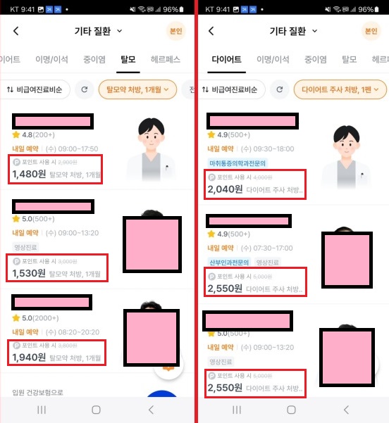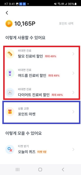 - 포인트는 탈모 진료비, 여드름 진료비, 다이어트 진료비에 사용할 수 있습니다. (비대면 진료만 가능)