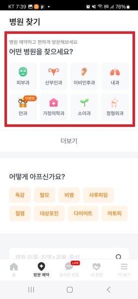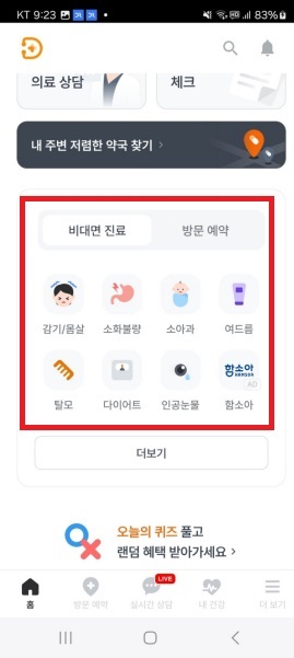 비대면 진료를 받고자 하는 과(科)를 선택하고 진행하면 됩니다.