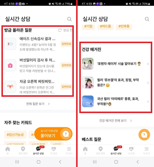 3) 실시간 상담/건강 매거진: 실시간 건강 질문 & 건강 정보 가득