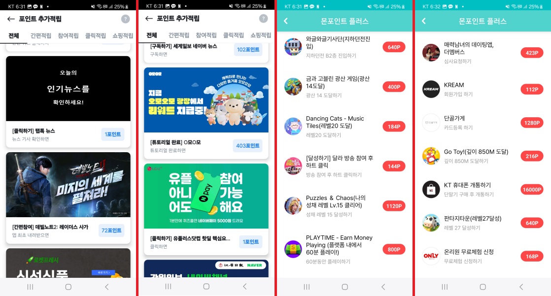 몬포인트 플러스에서는 외부 제휴 광고에 참여하고, 포인트를 적립받을 수 있습니다.