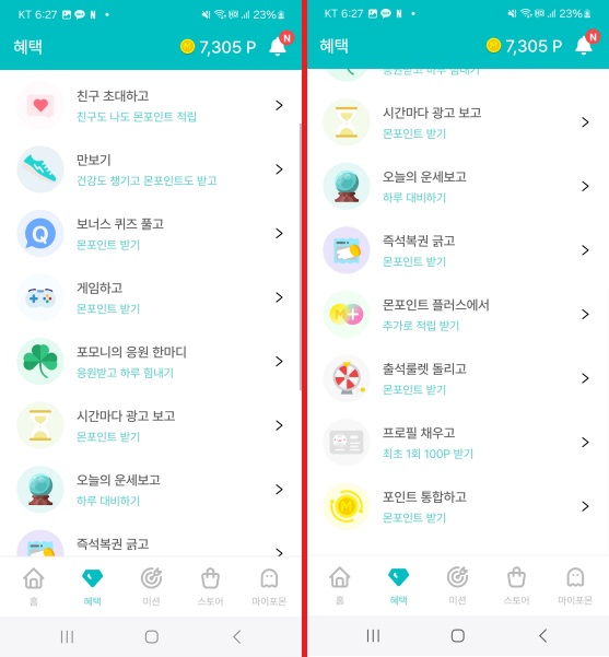 포인트는 만보기, 미션하기, 시간마다 광고보기, 친구초대 등 다양한 방법을 통해 얻을 수 있습니다. 포인트 적립 방법을 하나씩 보여드릴테니, 쭉 읽어보시고 여러분의 마음에 드신다면 이용해보세요! (마음에 안드신다면... 어쩔 수 없죠.)