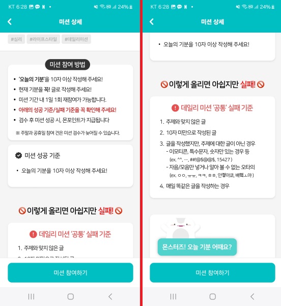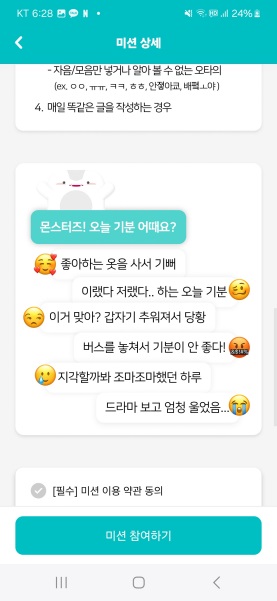 여러분께 보여드릴겸 저도 미션 한 번 도전해볼까요? 저는 '오늘 나의 기분은?' 미션에 도전해보았습니다.