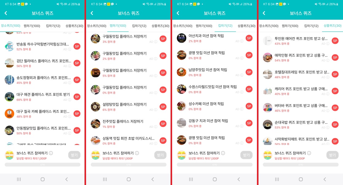 일일 퀘스트 출시! 출석체크, 만보기, 미션, 퀴즈 등 매일매일 추가 리워드 받고 스토어에서 현금처럼 사용해요!