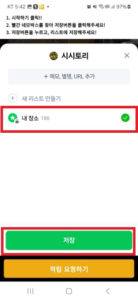 4) '내 장소'를 선택하고 [저장] 버튼 누르기