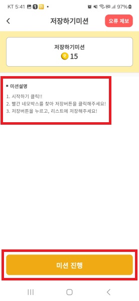 저장하기 미션은 인터넷 브라우저 없이 바로 캐시멜로우 앱 내에서 진행됩니다.