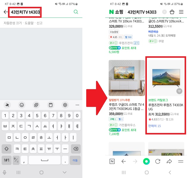 4) 실행된 브라우저에 복사한 키워드 붙여넣고 검색