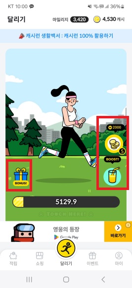 1. 보너스(BONUS) 상자 클릭: 가끔씩 보너스 상자가 나타납니다. 광고 배너만 클릭해도 마일리지를 받을 수 있습니다. 클릭만 해도 되기 때문에 보일 때마다 받으시길 추천합니다.