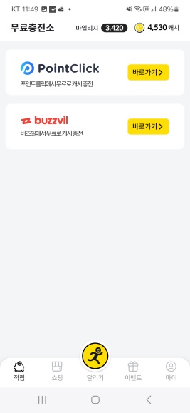 포인트클릭과 버즈빌, 2곳의 무료충전소가 준비되어 있네요.