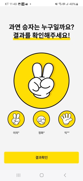 가위, 바위, 보 중 하나를 선택하고, 승리하면 100캐시를 보상을 받는 간단한 게임입니다.