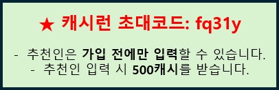 ※ 위 추천인 코드를 입력하고 가입하면 시작 보너스 500캐시를 받습니다.