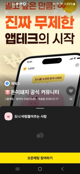 아, 돈이돼지 오픈톡방도 있더라고요.
