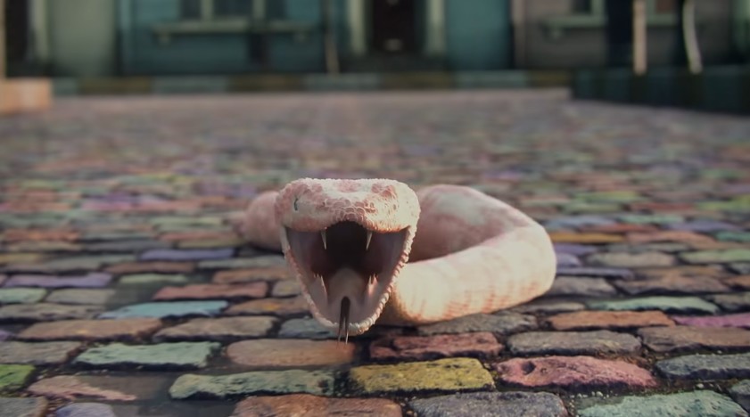 라고 자신만만하게 외치던 알록달록한 뱀이 갑자기 여러 나비 조각으로 변해버립니다.