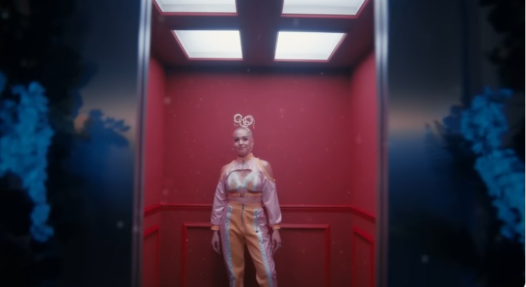 뮤비가 끝나갈 무렵 메이블은 엘리베이터를 타고 퇴장합니다.