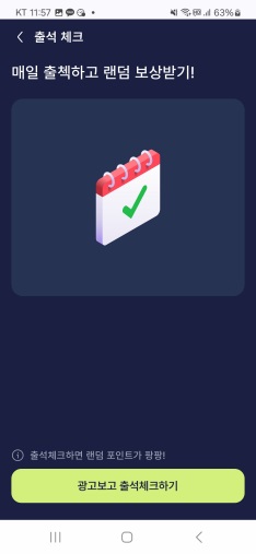 영상 광고를 시청하면 랜덤 포인트를 받습니다.