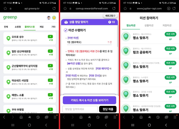 플레이스 저장이나 정보/URL 퀴즈, 상품 정보/번호 등의 퀴즈를 맞추면 포인트가 지급되죠.