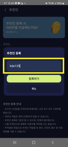 - 추천인을 입력하시면 100포인트를 받을 수 있습니다. 🔥