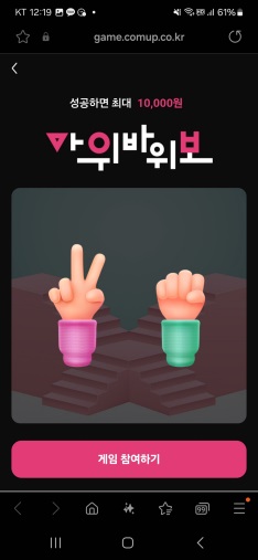 가위바위보 중 하나를 선택해서 승리하면 포인트를 받고, 패배하면 아무 것도 없습니다. 비기면 한 번 더 참여할 수 있습니다.