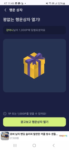 행운상자에서는 1포인트 또는 1000포인트가 등장합니다. 오우, 완전 극과 극이네요.