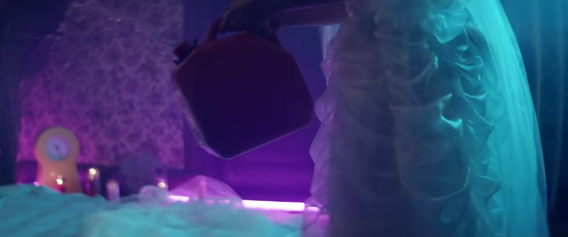 그리고 주인공의 기름 세례와 라이터로 화면이 불타며 마무리됩니다.