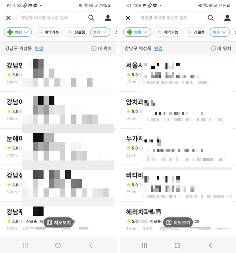 병원과 관련된 앱이라면 주위에 어떤 병원이 있는지 확인할 수 있는 기능은 기본 중의 기본이죠!